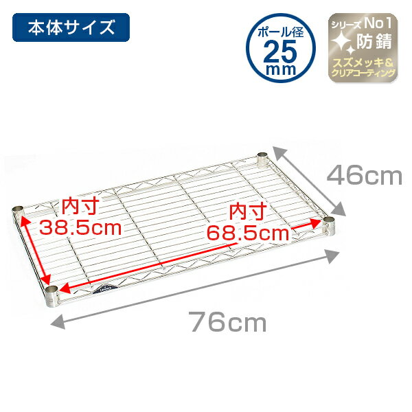 商品スペック商品名/型番純正品 ルミナス プレミアムライン スチールシェルフ 幅75×奥行45cmモデル 1枚/SSM7645カテゴリポール径25mm ルミナス プレミアムライン用 パーツ分 類棚板 スチールシェルフサイズ幅76×奥行46cm幅76×奥行46cmのラック用棚板内寸内寸:幅68.5×奥行38.5cmJANコード4549813731917/716269耐荷重90kg素 材スチール(スズメッキ&クリアコーティング(高度防錆加工)セット内容・付属品スズメッキ加工 ワイヤーシェルフ(棚板)×1枚、スリーブ(棚板取付パーツ)×4組本体カラープラチナシルバー色 メーカー/ブランドドウシシャ/ルミナス(Luminous) 商品説明(備考) スズメッキ仕様のラックを組み立てる際は、対応ポールとの組合せが必要です。