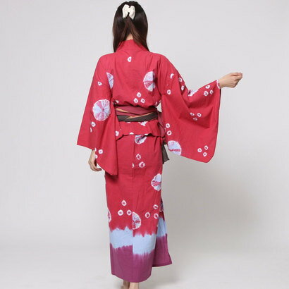 【アウトレット】【チャイハネ】しぼり染めタイダイセパレート浴衣 ピンク
