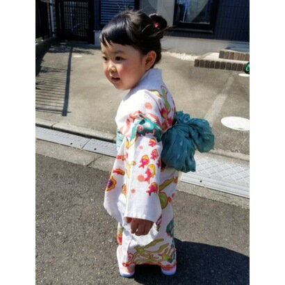 【アウトレット】【チャイハネ】紅型風プリントキッズ浴衣110cm ホワイト