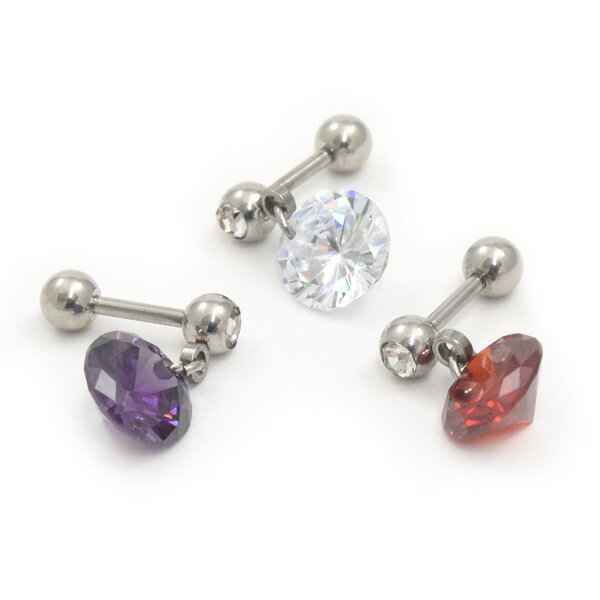 揺れるストーン付き ストレートバーベル ボディピアス まっすぐなシャフトにボールが付いた ステンレスのボディピアスです。