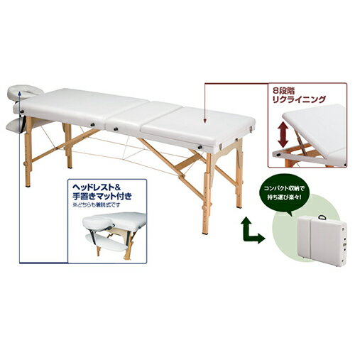 商品詳細 商品 木製折り畳みベッド CB920 サイズ 高さ:530mm〜775mm 幅:700mm 長さ:1830mm カラー 白 ホワイト 特長 折りたたみ式で専用ショルダーバックに入れて楽に持ち運べる 木製折りたたみ式ボディー・フェイシャルベッドです。